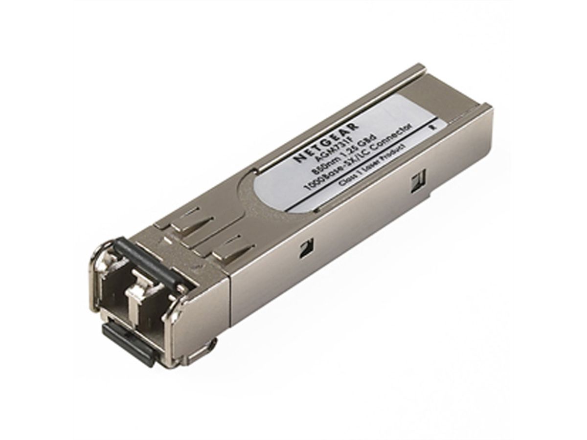 Das Modul AGM731F lässt sich in einen Standard SFP-GBIC-Slot einschieben und stellt einen 1000Base-SX Anschluss für Multi Mode Fiber mit Gigabit-Speed für NETGEARs Smart-Switches und Managed-Switches bereit.