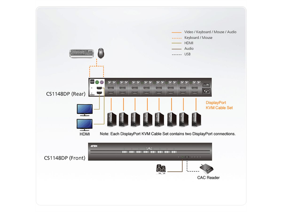 ATEN CS1148DP 8-Port USB DisplayPort Dual Display Secure KVM