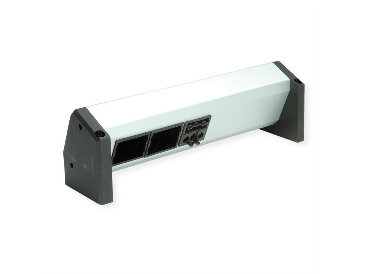 Sockets: - according to DIN 49 440, tested according to: VDE0620-1 - 2-pole with earthing contact - 16A/3680W, AC250V, IP20 - rotated by 35° - Custom modules: - 2x ABD for custom modules - Material: - Plastic: PA6 GF 30 V1, glow-wire test up to 850°C - Profile: anodised aluminium