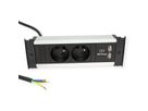 KAPSA S socket strip 2xUTE sockets France 1xUSB double charger 5V DC / 3.1A Supply cable: 2.0m H05VV-F 3G1.5mm² black with enclosed earthing contact mounting plug, optional accessories: 1xcover packed in a box.