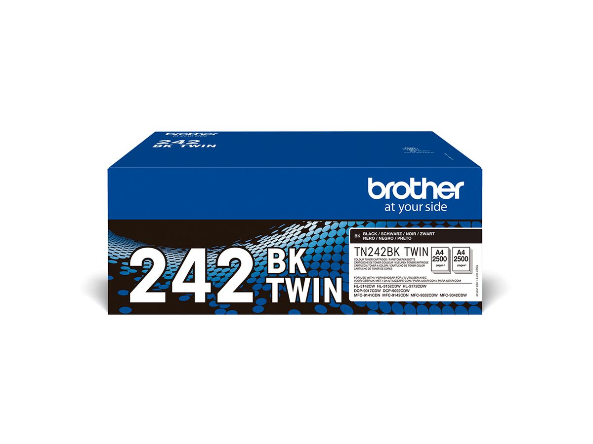 Brother TN-242BKTWIN. Black toner page yield: 2500 pages, Printing colours: Black, Quantity per pack: 2 pc(s)