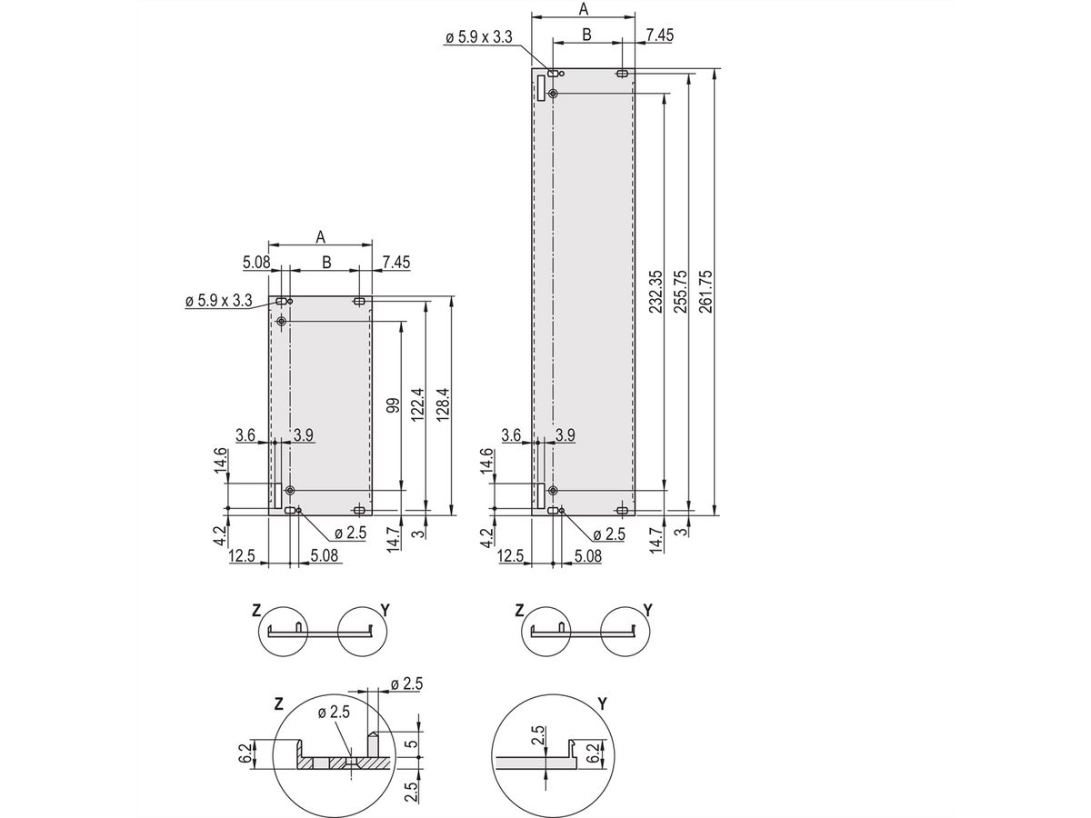 SCHROFF Plug-In Unit U-Profile Front Panel for Handle Form 1, 6 U, 12 HP, 2.5 mm, Al, Front Anodized, Rear Conductive