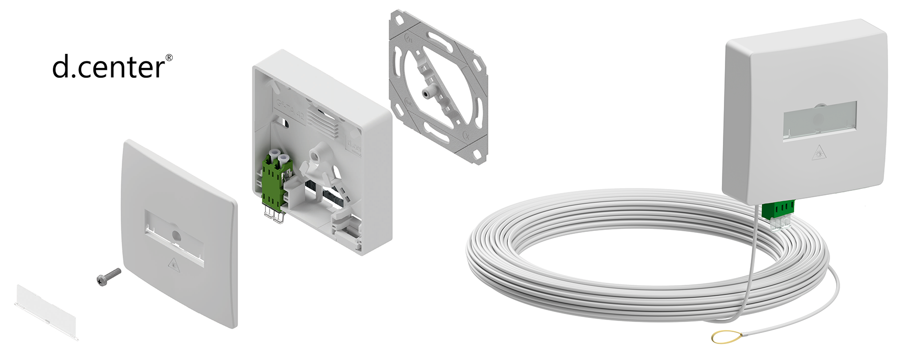 The Gf-TA 42 system is a fibre optic subscriber connection for network level 4 (NE4). It therefore forms the termination point of the fibre optic cable in the home or at the customer's location. This ensures that the fibre optic cable is transferred cleanly, securely and in accordance with standards from the house network/riser zone to the end customer – either ready for splicing (for on-site assembly) or pre-assembled as a plug-and-play variant.