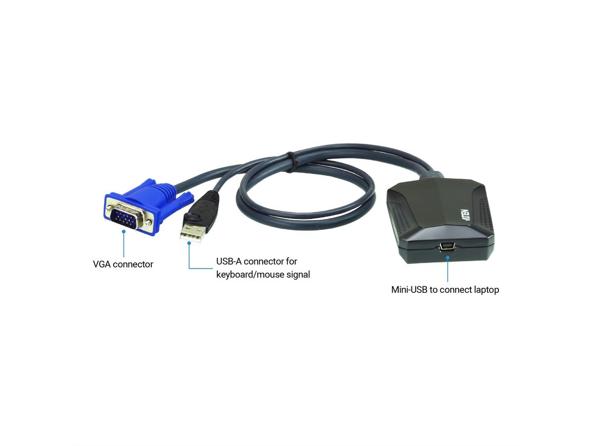 De CV211 laptop USB consoleadapter biedt een directe laptop-naar-computerverbinding voor snelle externe desktoptoegang zonder de noodzaak om software te installeren. Zeer efficiënt in een compact ontwerp, de CV211 biedt bidirectionele bestandsoverdracht, one touch macro's, video opname en schermopname via een USB 2.0 en VGA composietkabel.