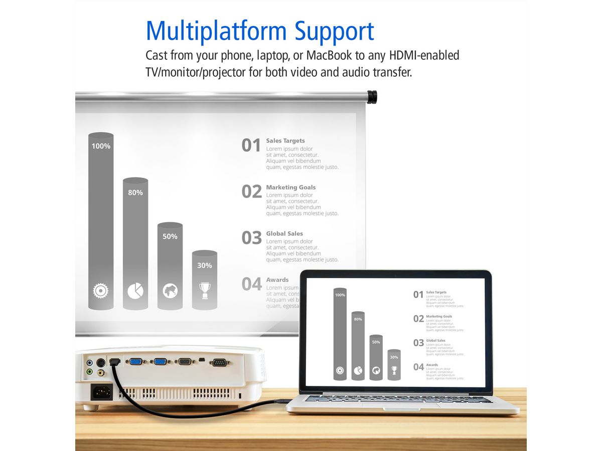 Het ondersteunt HDMI 2.0 met een resolutie van 4K (3840 x 2160 bij 60 Hz). Gebruikers kunnen high definition video en audio van de computer naar een HDTV casten voor videostreaming of gaming. Bovendien kunt u uw monitor aansluiten en configureren voor een gespiegelde weergave of een uitgebreide desktopweergave.