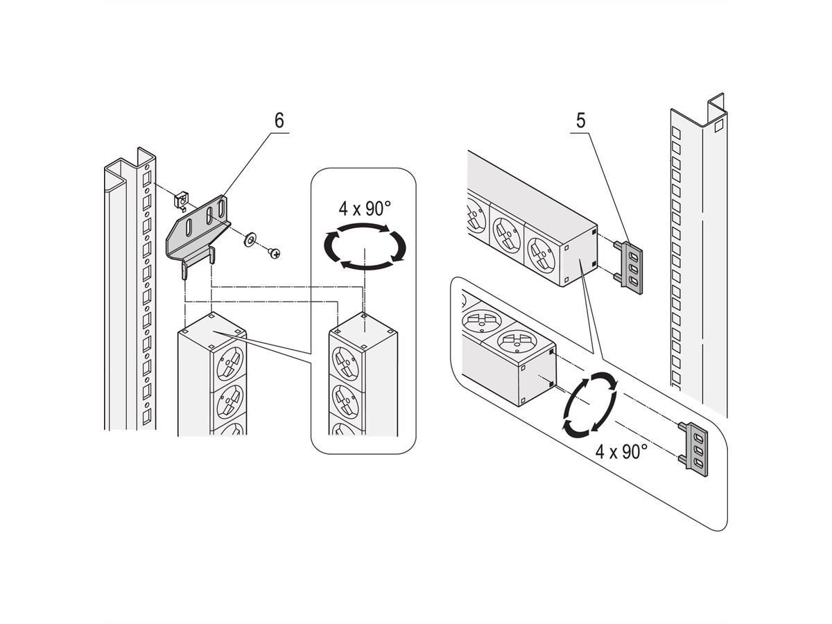 Installatiehoogte 1 U - Ingang met Wieland GST 18-stekker - Uitgang met contactdozen met randaarde - Uitvoeringen met en zonder overstroombeveiliging - Contactdoosinzetstukken in de kleuren wit, zwart of rood - Contactdoosstroken kunnen tijdens de installatie in alle vier richtingen worden gedraaid (in stappen van 90°) - Horizontaal en verticaal installeerbaar - Conform DIN 57620